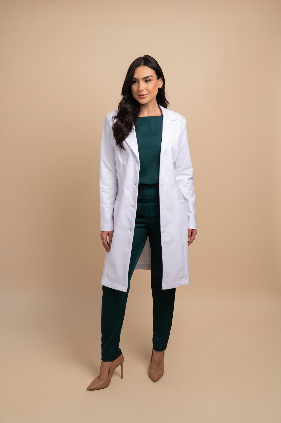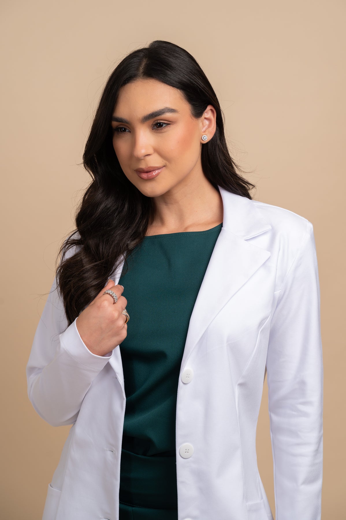 Sua trama densa e acabamento refinado conferem estrutura elegante, resistência e caimento impecável, perfeitos para profissionais da área médica.