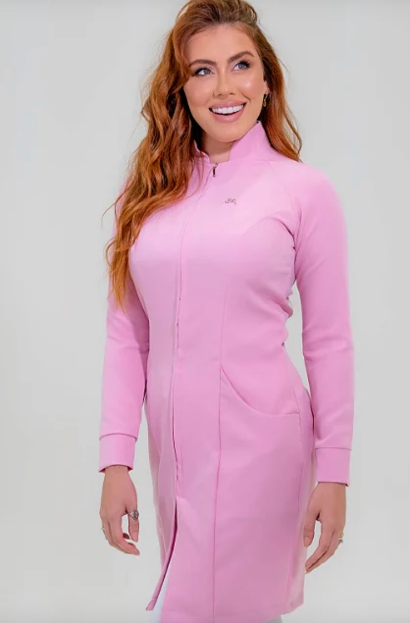 Jaleco Feminino Manga Longa Louise Rosa Chiclete
