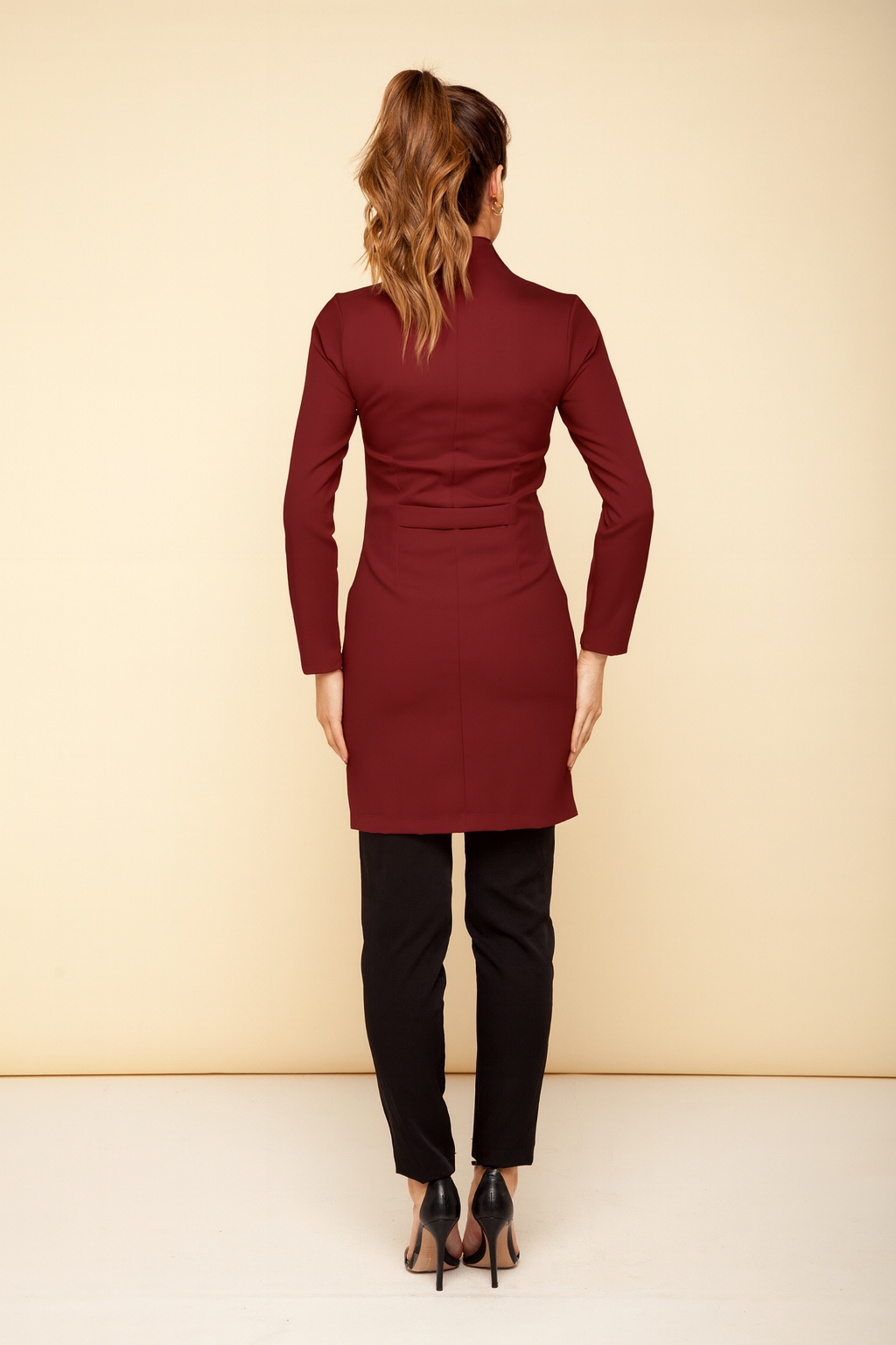 Jaleco Feminino acinturado com gola estilosa exclusiva Le Petit, fechamento em ziper, bolsos frontais e detalhe nas costas .